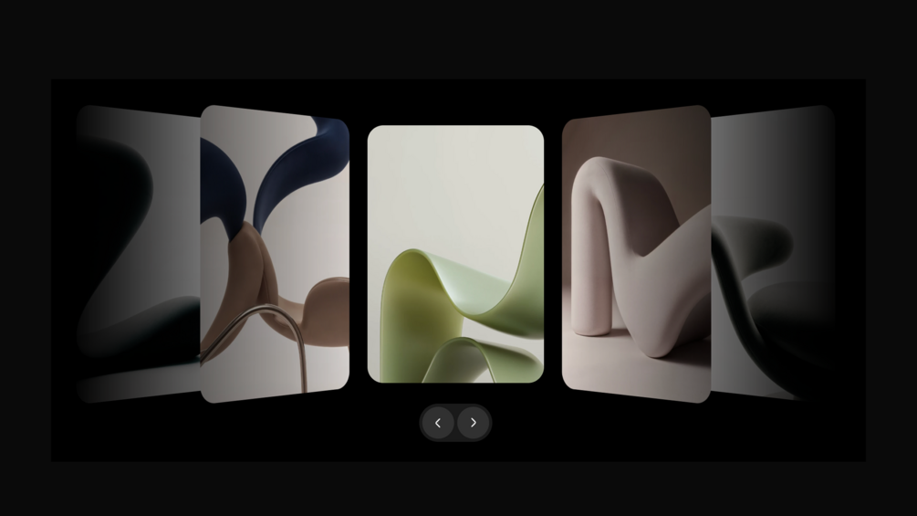 A visually rich carousel built around depth, focus, and spatial motion.